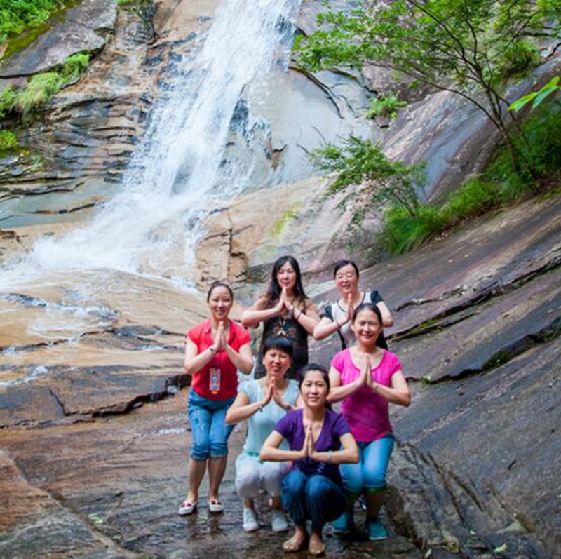 第二天(tian)的(de)(de)行(xing)程,至天(tian)馬(ma)自(zi)然保(bao)護區爬(pa)山(shan)(shan),途經五道瀑(pu),每(mei)道瀑(pu)都有(you)一個美(mei)麗的(de)(de)傳(chuan)說(shuo)(shuo)。天(tian)公(gong)作(zuo)美(mei),太陽偶爾露出臉,從樹(shu)縫(feng)間篩下(xia)一個個小光斑(ban)(ban),山(shan)(shan)風習(xi)習(xi),愜意微涼,感(gan)覺不(bu)到盛夏的(de)(de)炎(yan)熱。呼吸著(zhu)新鮮的(de)(de)氧負離子,神清氣爽,腳步變得輕盈,走久了路邊歇(xie)歇(xie)腳,停下(xia)來跟一只爬(pa)行(xing)的(de)(de)毛(mao)毛(mao)蟲說(shuo)(shuo)說(shuo)(shuo)話(hua),看一張蜘蛛結的(de)(de)網,和不(bu)知(zhi)名的(de)(de)植(zhi)被(bei)合個影,樹(shu)根邊覆滿(man)一抔抔青苔,生出一朵(duo)朵(duo)打著(zhu)傘(san)的(de)(de)菌菇。在(zai)(zai)銀(yin)弓(gong)瀑(pu),清澈(che)見(jian)底五彩斑(ban)(ban)斕的(de)(de)石塊間,發現潛在(zai)(zai)水底游動(dong)的(de)(de)娃(wa)娃(wa)魚(yu),驚喜,那一刻仿(fang)佛(fo)自(zi)己就是一條歡快的(de)(de)魚(yu),自(zi)由而自(zi)在(zai)(zai)。晶瑩剔(ti)透的(de)(de)瀉玉(yu)瀑(pu)響徹(che)山(shan)(shan)澗,霧氣迷蒙,打濕我們(men)的(de)(de)衣角,在(zai)(zai)瀑(pu)布雨跳(tiao)動(dong)的(de)(de)音符伴奏下(xia),我們(men)放松身心,感(gan)恩生活,感(gan)受瑜珈之美(mei)。