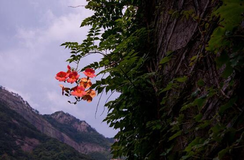 峽(xia)谷(gu)入口處(chu),一團盛開的凌霄(xiao)花吸引了我的視線,“凌云而上(shang),直沖云霄(xiao)”,凌霄(xiao)花,我喜歡你的名字。